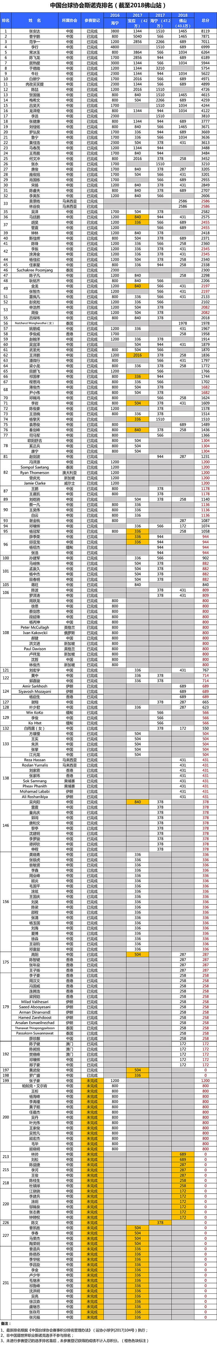 中国职业斯诺克巡回赛及中国台球协会斯诺克排名
